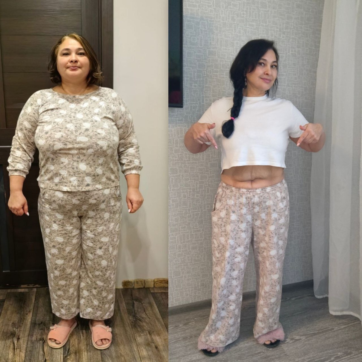 Не просто цифры на весах, а шаги по возвращению энергии, уверенности и радости в каждодневной жизни. Точка А — как всё начиналось: - Вес: высокий, влияние на подвижность и самооценку. - Самочувствие: отёки, плохой сон, скачки АД и сахара. - Эмоционально: неуверенность в своих силах, срывы с диеты, страх повторного набора веса. 😔 - Трудности: сложности с соблюдением правил питания и дисциплины; привычки, которые тянули назад. Что привело к успеху: - Индивидуальная коррекция привычек: не «диета», а план, который можно жить. - Осознанные корректировки калорийности. - Фокус на белке, клетчатке и насыщении — чтобы не жить в прострации от голода. Точка Б — результаты через 9 месяцев: - Минус 44 кг. - Вместе со снижением веса: Помолодела, стала энергичная, красивая, может купить ту одежду которую хочет!!! Нормализовалось АД, сахар в крови, ушли отёки, восстановился сон от вечера и до утра (без пробуждения). Забыла про изжоги, вздутия и запоры. ✨👗😴 - Уверенность: возвращение к социальн