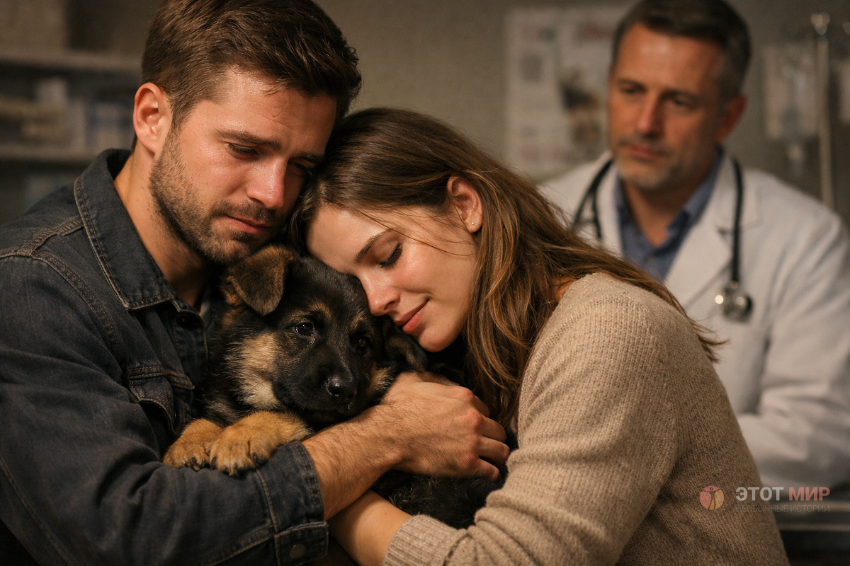 Молодая пара привезла своего тяжело больного щенка в ветеринарную клинику, чтобы попрощаться с ним. Они сидели, прижавшись друг к другу, не в силах сдерживать слёзы, и держали пса так близко, как будто надеялись, что тепло их рук сможет оттянуть неизбежное. Маленькое тело дрожало в их объятиях, но внезапно щенок чуть-чуть пошевелился, и, словно из последних сил, прижался к хозяйке, неуклюже уткнувшись в неё мордочкой. Это движение было едва заметным, но казалось, что он пытается её обнять. Тот миг пронзил сердце острой болью — в нём чувствовалось прощание, лишённое слов.