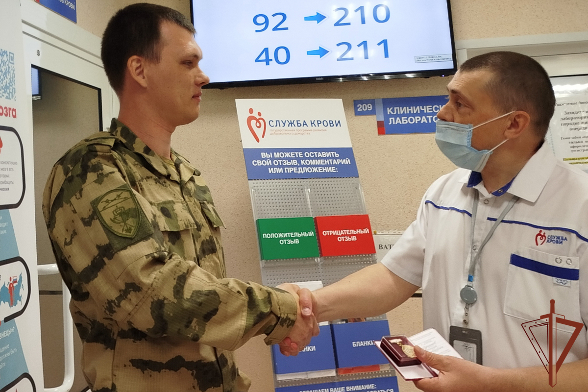 В Екатеринбурге военнослужащий отдельного батальона охраны и обеспечения управления округа был удостоен нагрудного знака «Почетный донор России». За время участия в донорском движении представитель ведомства совершил десятки донаций и сдал в общей сложности более 18 литров крови для нужд пациентов региональных клиник.