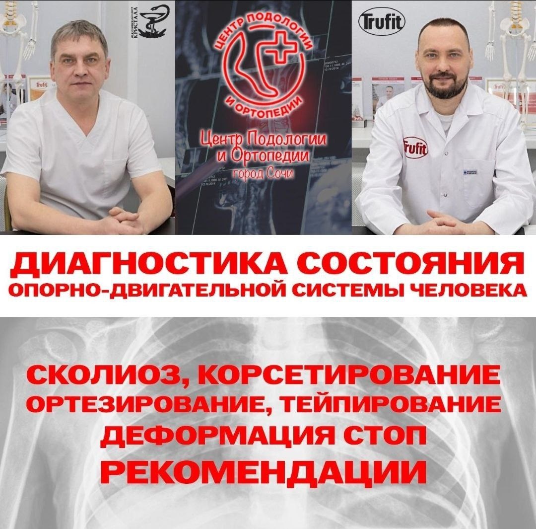 В центре ПОДОЛОГИИ и ОРТОПЕДИИ г. Сочи, будет работать команда врачей! Чьей задачей является выявление и лечение проблем связанных с Опорно Двигательным Аппаратом человека. Воробьев Максим Валерьевич - невролог, мануальный терапевт, остеопат, медицинский директор компании TRUFIT( производитель ортопедических изделий) Денисов Сергей Анатольевич - врач травматолог-ортопед, Главный врач Медицинскинского центра Травматологии и Ортопедии «КРИСТАЛЛ» в г.Оренбург. который является базой Оренбургского филиала компании TRUFIT. Симбиоз травматологии-ортопедии, неврологии, понимание и знание биомеханики, огромного опыта, долгой совместной работы (около 10 лет) и направленности работы на результат –ЗДОРОВЬЕ пациентов, привёла к созданию сплоченной команды врачей! Общий медицинский стаж каждого доктора не менее 20 лет. Основные аспекты и направение работы специалистов- 1 -Общая оценка состояния опорно-двигательного аппарата 2.-Анализ биомеханики в статике и динамике. Особое внимание уделяетс