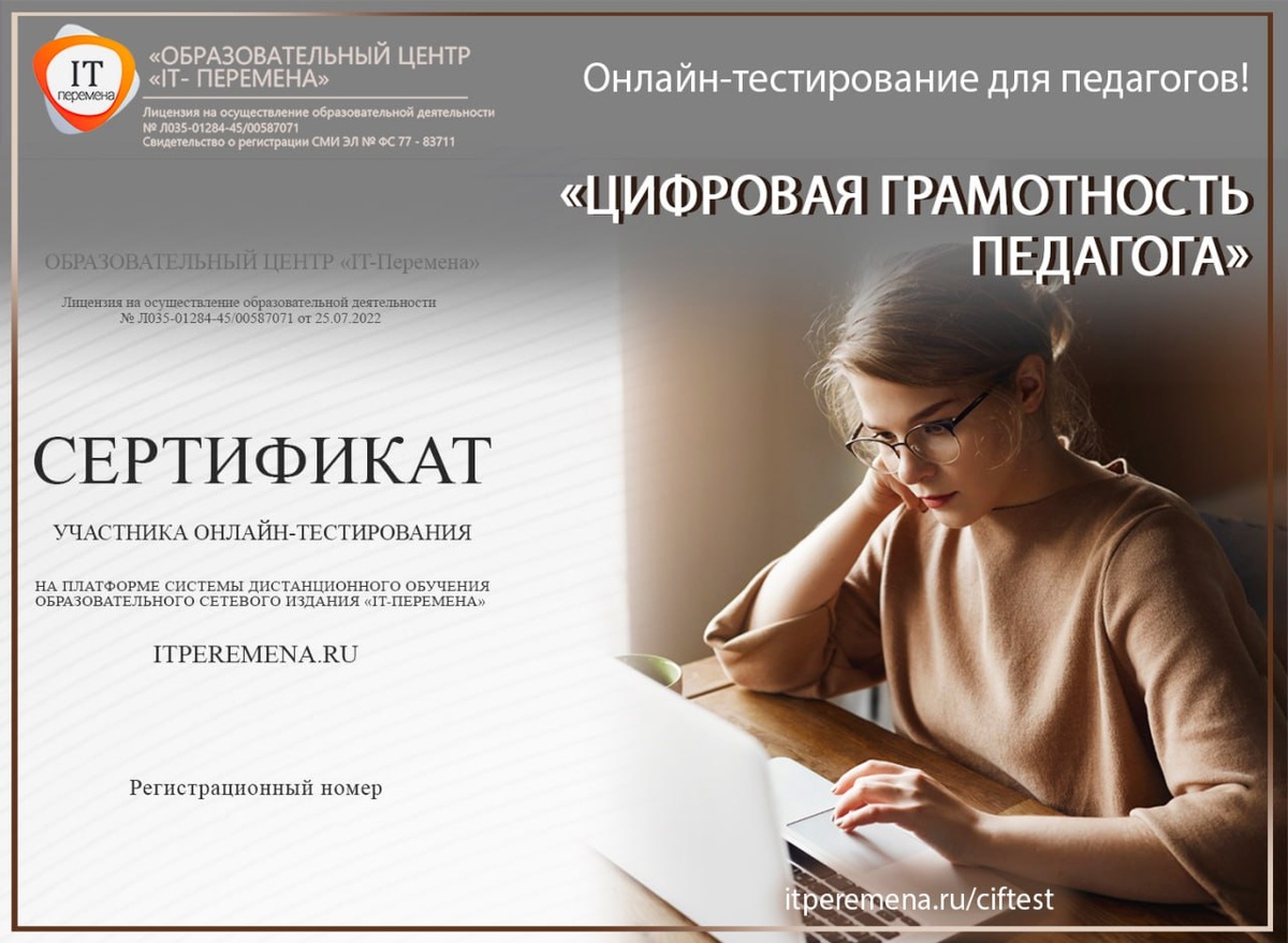 ! Очередная тема – «Цифровая грамотность педагога». Тестирование можно пройти прямо на нашем сайте https://itperemena.ru/ciftest, без дополнительной регистрации. Попробуйте и проверьте свои знания!