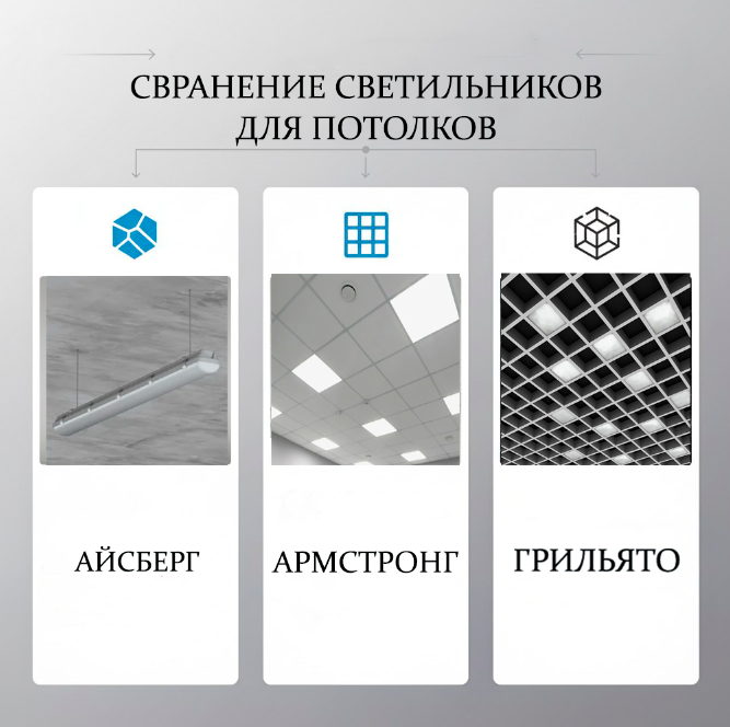 Айсберг vs. Армстронг vs. Грильято: Какой светильник выбрать для вашего производства?