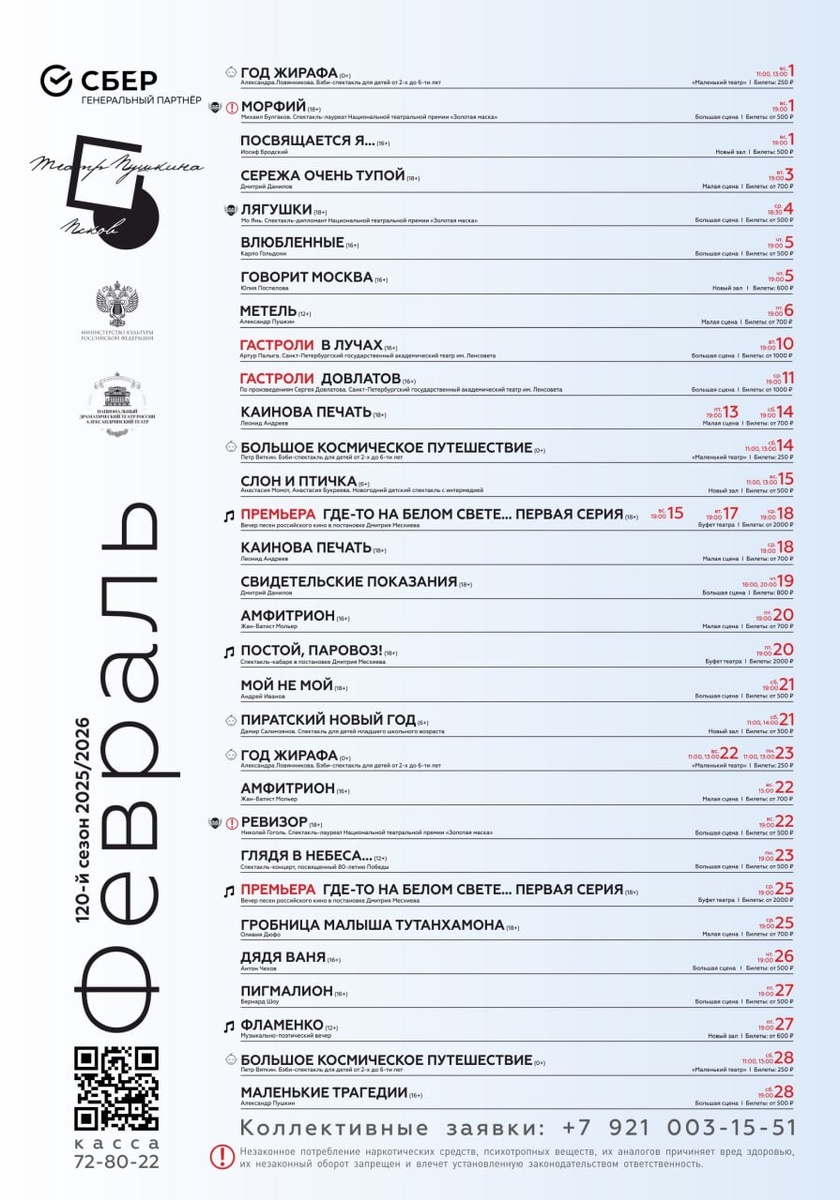 Актуальные афиши с учетом изменений на февраль и март в Псковском театре драмы имени А.С. Пушкина 🎭