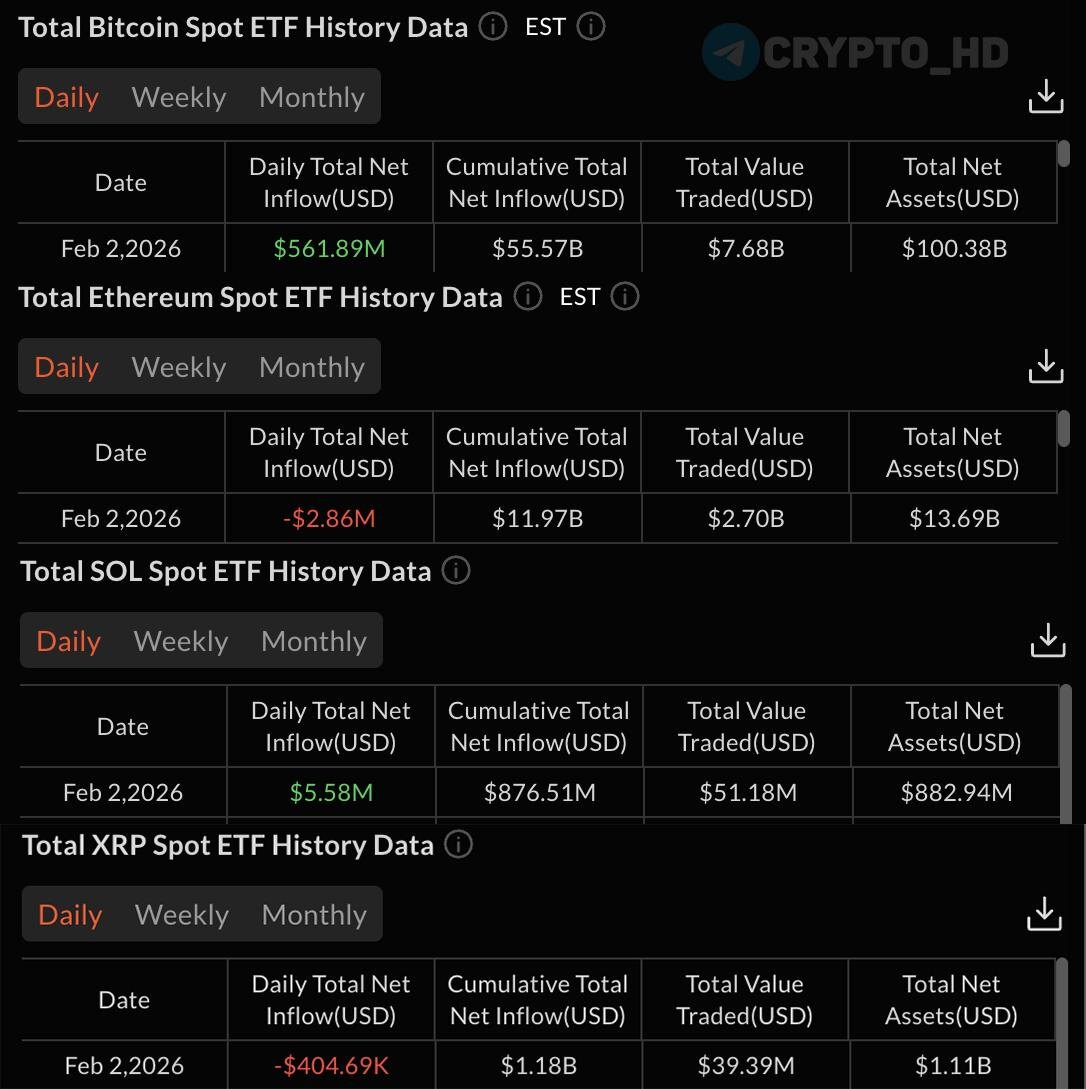 🤔 SV: Финпотоки крипто-ETF за вчерашний день.