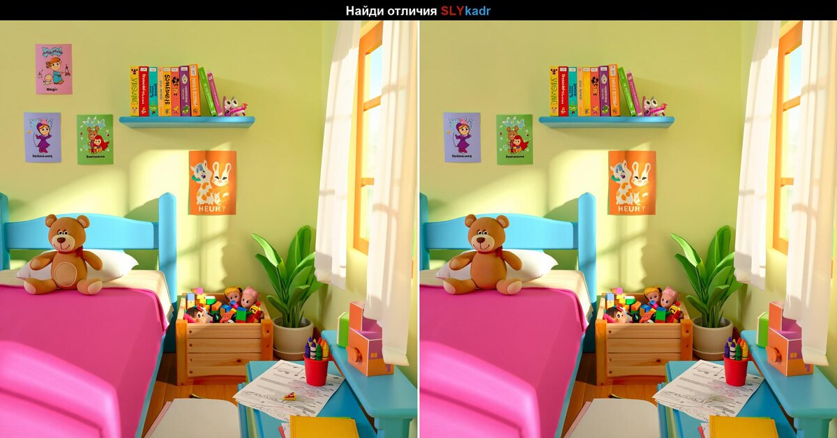 С вами канал «Хитрый кадр», а значит — самое время проверить свою внимательность. Перед вами уютная детская комната, залитая солнечным светом… но не всё здесь так просто.