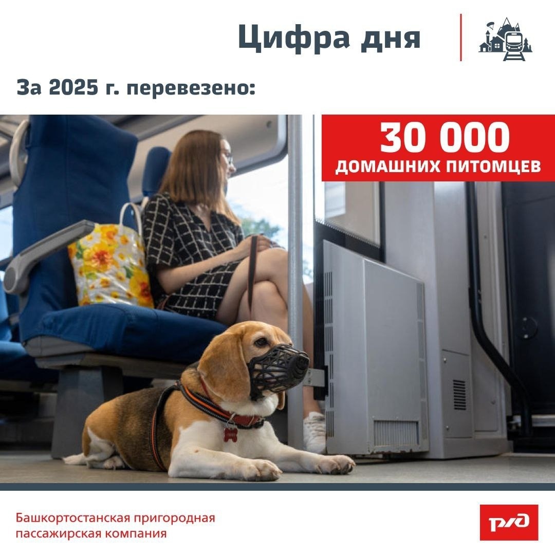 БППК, обслуживающая несколько регионов, продала для четвероногих пассажиров порядка 30 тысяч билетов. Пригородные поезда перевезли в минувшем году в Башкирии и в других регионах зоны БППК порядка 30 тысяч домашних животных, что на 20% выше уровня 2025 года. В компании рассказали, что чаще всего с животными отправлялись в дорогу по маршрутам «Южного экспресса» (Уфа – Оренбург – Уфа), «Сурской стрелы» (Саранск – Пенза-1 – Кузнецк – Саранск), а летом — на горном экспрессе «Айгир» (Уфа – Белорецк – Уфа). Размер платы за провоз домашних животных составляет 25% от стоимости билета взрослого пассажира. Не взимается плата за собак-проводников. Ранее сообщалось об изменении в графике движения популярных электричек в феврале.