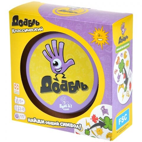 Правила: игроки ищут общие элементы на карточках. Тот, кто первым заметит общее изображение, получает карточку.