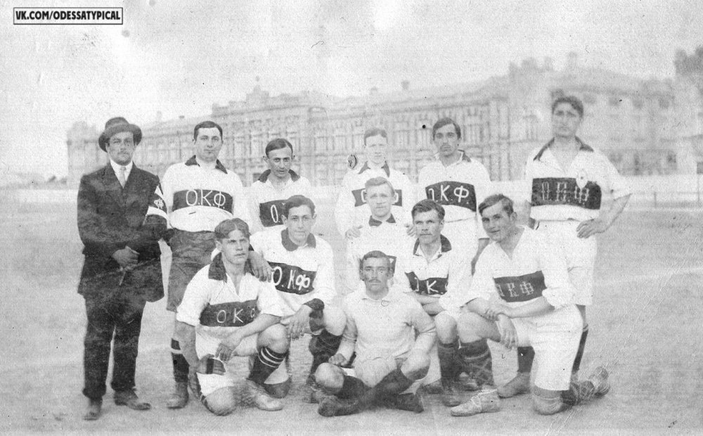 Футболисты Одесского кружка футбола. Одесский кружок «Футбол» (ОКФ) — один из старейших футбольных клубов Одессы, основанный в 1908 году. Учредители клуба — почётный гражданин Александр Георгиевич Кирсанов, прапорщик запаса Николай Александрович Виноградов, Житомирский мещанин Лука Осипович Петренко, капитан 13-го Стрелкового полка Андрей Иванович Посохов, крестьянин Подольской губернии Иван Антонович Шаевский, отставной поручик Константин Венедиктович Зданевич, подпоручик 205-го резервного Измаильского полка Василий Михайлович Крекнин, германско-подданный Юлий Юльевич Тайхманн. ⚓️ Типичная Одесса || ❗️Прислать новость / Фото❗️ | | Канал по повесткам👈 | |Мы в MAX👈