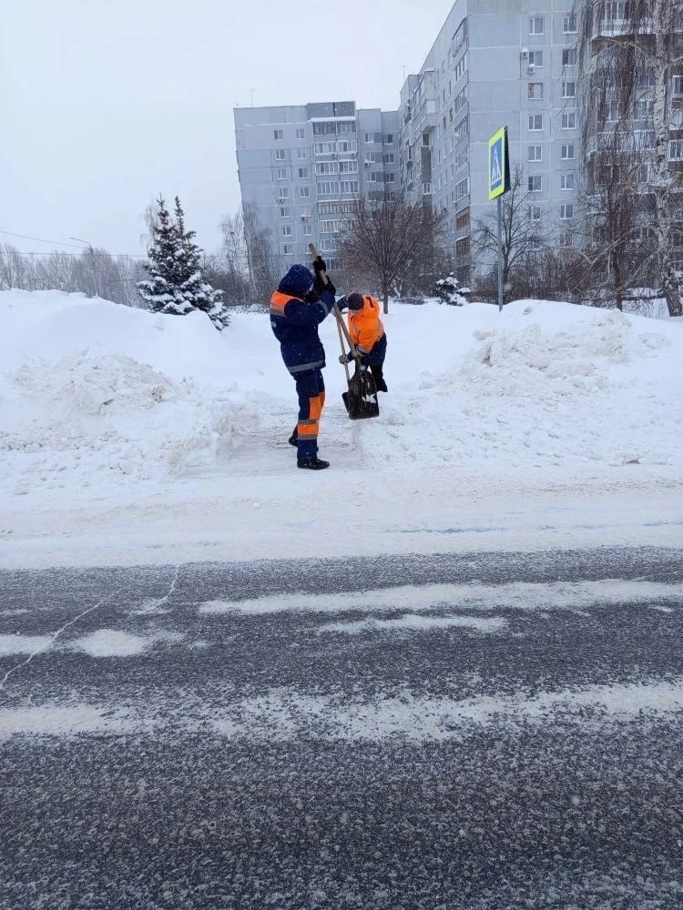 В Ульяновске остановки, заездные карманы и пешеходные переходы расчищают 13 бригад «ручников