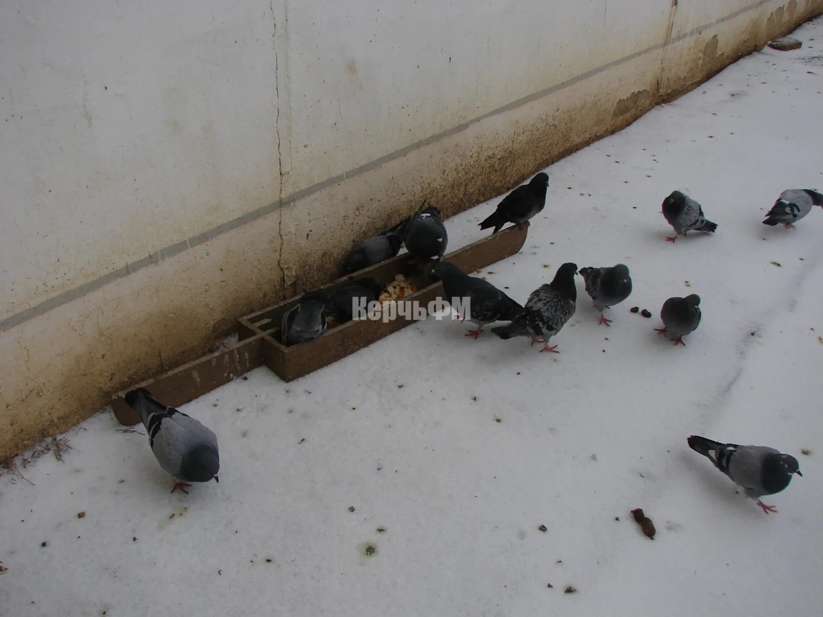 В Керчи сегодня днем мороз -4, ощущается, как -10. Сердобольные керчане, рискнувшие в гололедицу выйти их дома, не забывают накормить птиц, передает КерчьФМ. У стен домов по Кирова, 119 и Сморжевского, 1 кормушки никогда не пустуют. Голуби - пернатые неприхотливые и радуются любой еде. Люди не жалеют белого хлеба, пшеницы, семечек, воды. В снежные дни птицам добыть пропитание непросто. Но, важно знать, что голубям категорически противопоказаны ржаной хлеб, соль и мясо в любом виде... подробнее Подписывайся на КерчьФМ.РФ @kerchfm