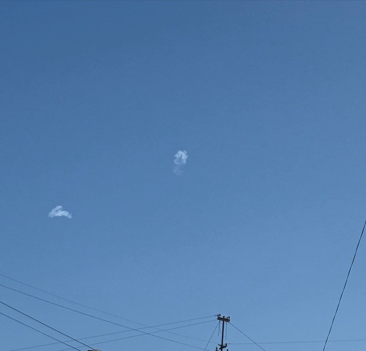 **❗️Следы в небе над Белгородом после работы ПВО.**
