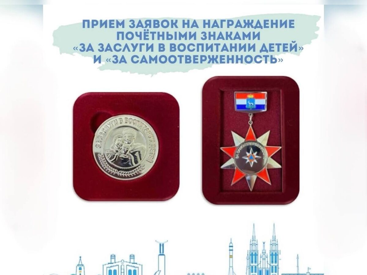 В Самаре до 1 марта продолжается прием заявок на награждение почетными знаками «За заслуги в воспитании детей» и «За самоотверженность». Об этом сообщили в городской администрации. Первой премией отмечают родителей или опекунов, воспитавших двух и более детей от семи до восемнадцати лет, которые достигли успехов в учебе, спорте, творчестве, научной или художественной сфере. Вторым знаком удостаивают горожан, проявивших мужество, отвагу и совершивших героический поступок в условиях, опасных для жизни. Торжественное вручение награды «За заслуги в воспитании детей» проводится в Международный день семьи, 15 мая, а «За самоотверженность» — накануне Дня России, который празднуют 12 июня. Каждый награжденный получит единовременную выплату в размере 100 тыс. руб. Право выдвижения кандидатов имеют трудовые коллективы, руководство организаций любой формы собственности и общественные объединения. Пакеты документов направляют главе города (kancelar@samadm.ru, телефон 8 (846) 332-30-40) и председат