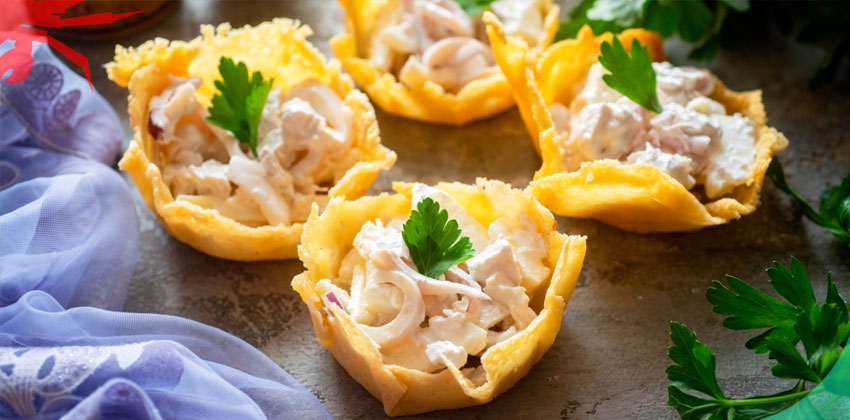 тарталетки салатом. Украшаем зеленью. Блюдо готово. Приятного аппетита! Источник: https://wildcrab.ru/news?id=2977