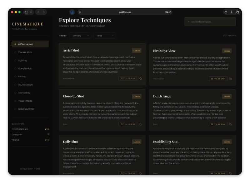 Появилась бесплатная библиотека промтов GrokFilm для создания кинематографичных фото и видео