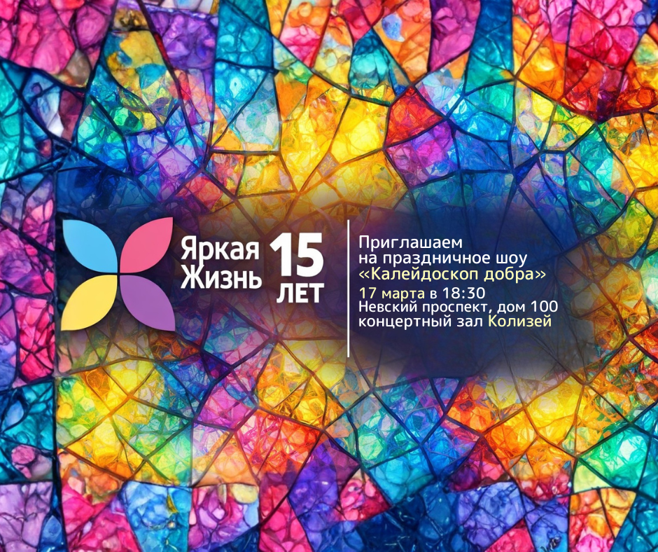 17 марта мы приглашаем вас на праздничное шоу «Калейдоскоп добра», посвящённое 15-летию Благотворительный фонд «Яркая Жизнь».