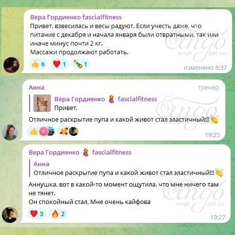 (очередная порция отзывов от участницы нашего клуба) МИНУС ПОЧТИ 2 КГ ДАЖЕ НА ОТВРАТНОМ ПИТАНИИ Взвесилась и весы радуют. Если учесть даже, что питание с декабря и начала января были отвратными, так или иначе минус почти 2 кг. Массажи продолжают работать. ЖИВОТ ПЕРЕСТАЛ ТЯНУТЬ И СТАЛ СПОКОЙНЫЙ И ЭЛАСТИЧНЫЙ «Отличное раскрытие пупа и какой живот стал эластичный!!!👏» Аннушка, вот в какой-то момент ощутила, что мне ничего там не тянет. Он спокойный стал. Мне очень кайфова. #ангоотзывы Впечатлило? Присоединяйтесь! https://ango.pxl.su/about/pack_club/