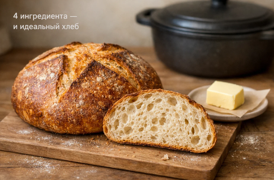 Рецепт домашнего хлеба на четырёх ингредиентах