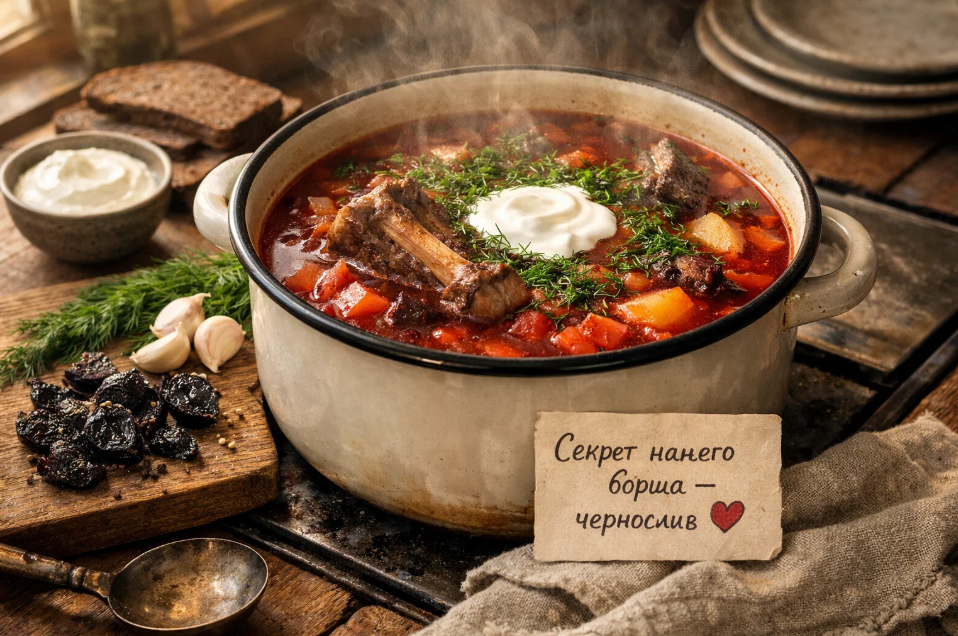 Свекровь объяснила, что этот секрет ей передала бабушка, которая жила в деревне под Миргородом. В те времена чернослив делали сами, сушили сливы в печи, и они получались с лёгким дымком. Добавлять их в борщ начали не от хорошей жизни — просто бедные семьи использовали всё, что было под рукой, чтобы сделать еду сытнее и вкуснее. Оказалось, что чернослив идеально дополняет свёклу, усиливает её сладость и создаёт тот самый баланс вкусов, который отличает домашний борщ от столовского.
