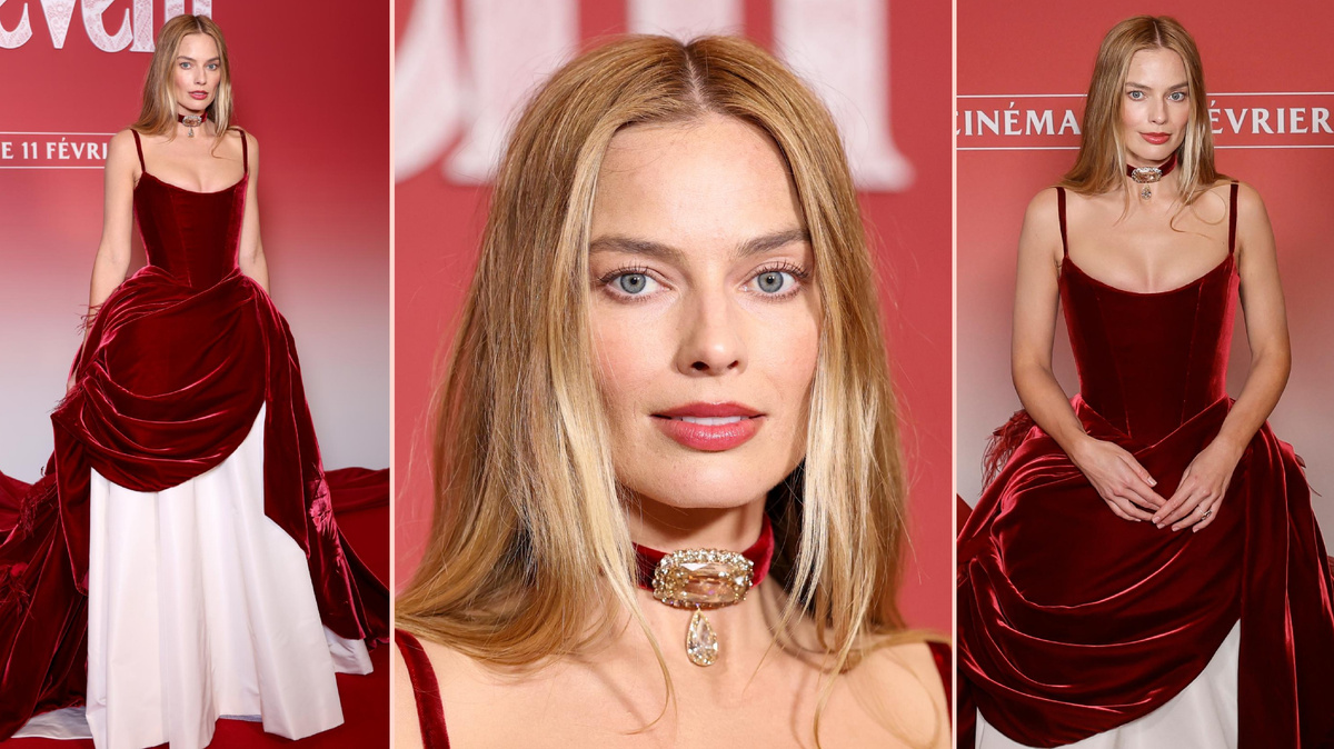 Марго Робби привнесла блеск в Город любви, появившись на красной ковровой дорожке парижской премьеры фильма "Грозовой перевал" в подходящем романтическом стиле. 35-летняя актриса выглядела как викторианская королева в специально сшитом для нее бальном платье Chanel из красного бархата, идеально облегающем талию и ниспадающем каскадом в эффектный шлейф, украшенный перьями. Простой вырез корсетного платья подчеркивал потрясающие украшения Робби: массивное бриллиантовое колье на красном бархатном чокере. Ожерелье было изготовлено на заказ знаменитым ювелиром Лоррейн Шварц и украшено 85 каратами бриллиантов цвета шампанского, в том числе массивным камнем ретро огранки, окруженным ореолом из более мелких бриллиантов на ободке, и подвеской в форме груши. Кольцо актрисы, также изготовленное Шварц, весило 15 карат. Робби выбрала свежий и простой макияж и прическу для французской премьеры. Шварц известн использованием бриллиантов цвета шампанского и украсила этими цветными камнями всех, от