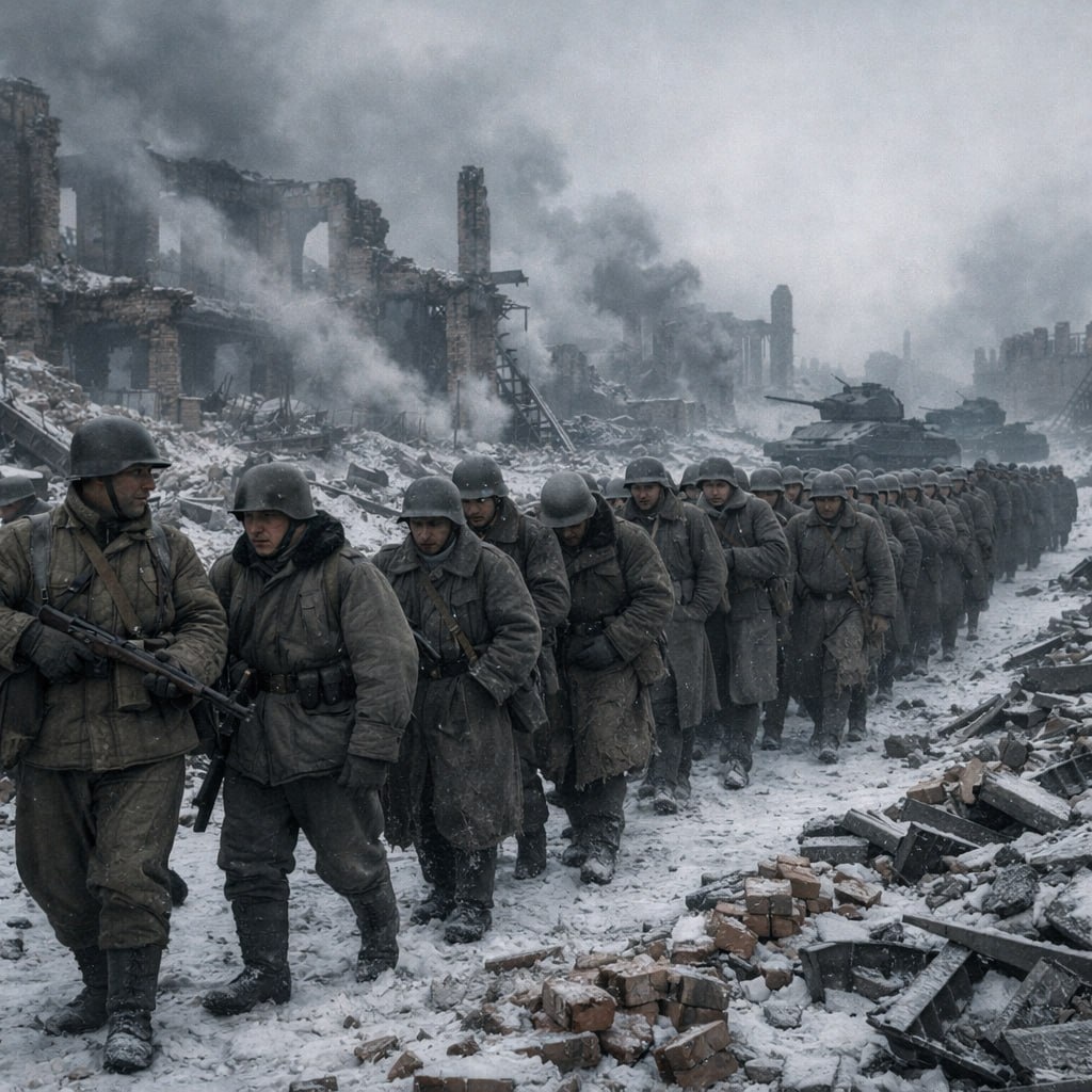 Орудия, которые месяцами не смолкали ни днём ни ночью, почти замолчали. Битва, ставшая символом всей Великой Отечественной войны, фактически завершена накануне, 2 февраля, капитуляцией последних частей 6-й армии вермахта. Но именно 3 февраля становится днём осознания масштаба произошедшего — днём подведения итогов и закрепления победы. Советские войска продолжают зачистку города. В подвалах, развалинах заводских цехов и подземных коммуникациях ещё находят разрозненные группы немецких солдат — обмороженных, измождённых, часто уже не способных сопротивляться. Их выводят из руин, оказывают минимальную медицинскую помощь и отправляют в тыл. Для многих из них война закончилась именно здесь — среди кирпичной крошки и замёрзших балок Сталинграда. Командование Донского фронта докладывает в Ставку: окружённая группировка противника полностью уничтожена или пленена. В плену — более 90 тысяч человек, включая фельдмаршала Паулюса, десятки генералов и штабных офицеров. Потери вермахта и союзни