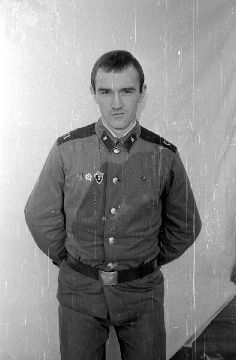 Солдаты войск связи фотографируются на фоне белой простыни, наверное в личное дело или доску почёта, 1976 год.