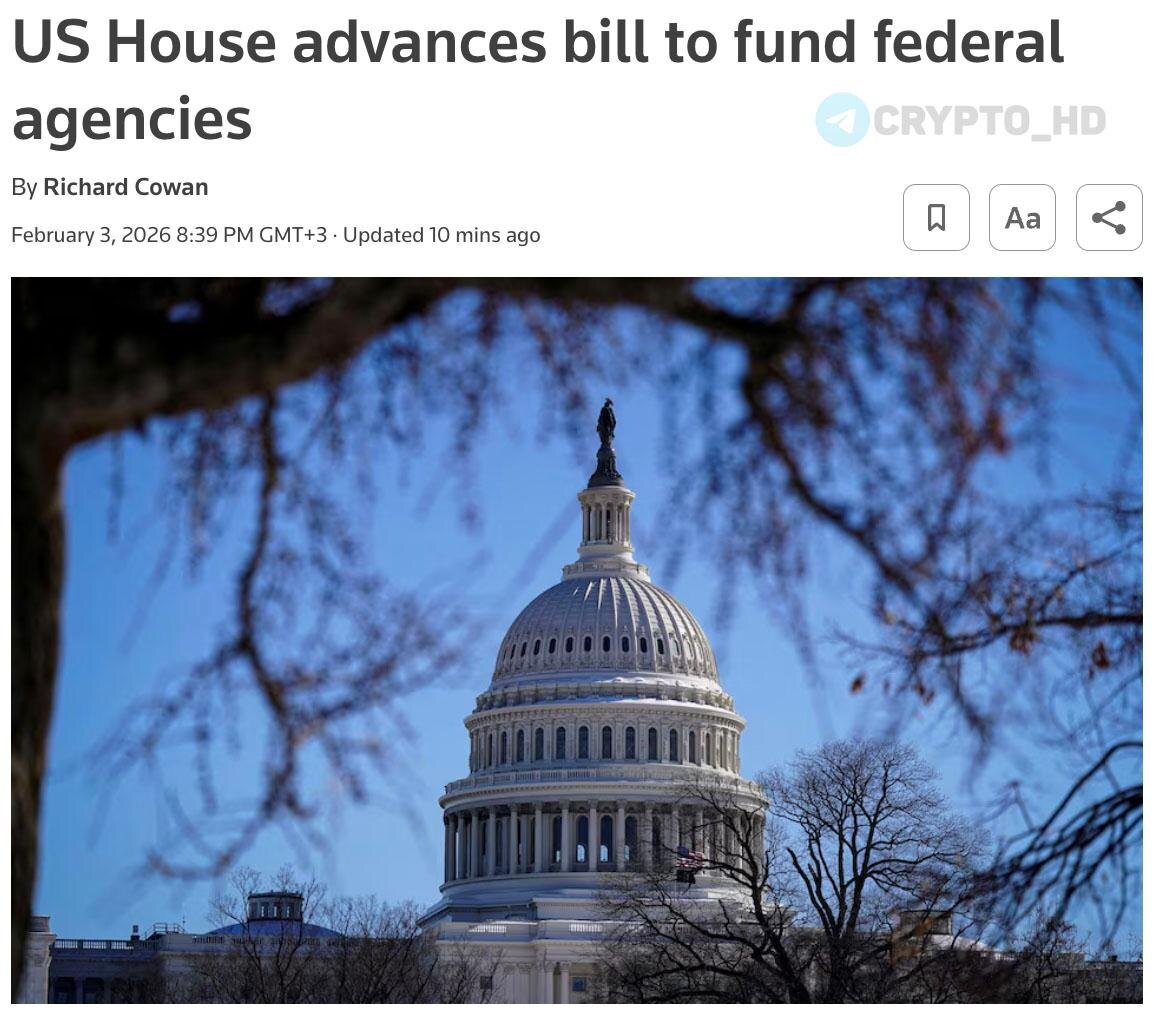 🔠🇺🇸 Reuters: Законопроект о финансировании правительства США прошел ключевой процедурный этап в Палате представителей, что открыло путь к