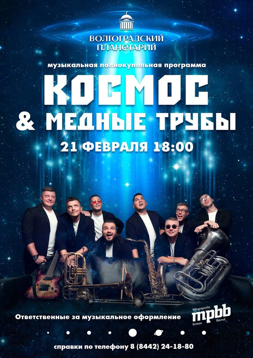 🎺 🎺 🎺 🎺 🎺 🎺 🎺 🎺 КОСМИЧЕСКИЙ КОНЦЕРТ от «MEGAPOLIS» BRASS-BAND В ПЛАНЕТАРИИ #Концерт_В_планетарии 🎺 🎺 🎺 🎺 🎺 🎺 🎺 🎺 ⠀ ⠀ Популярный волгоградский коллектив "Megapolis" Brass band представит двухчастную программу, созданную специально для пространства планетария. ⠀ 🎶 Первое отделение — Лаунж-космос Музыканты выступят в новом для себя амплуа, создав атмосферу космического лаунжа. ⠀ Вас ждёт романтика звёздных путешествий, инструментальные версии известных хитов в авторских обработках и приятные сюрпризы, которые мы приготовили для первого знакомства. ⠀ ⠀ 🎵 Второе отделение — Свободный полёт Здесь коллектив даст волю своей энергии и хулиганскому настроению! ⠀ Под полнокупольной проекцией прозвучат яркие и любимые публикой композиции, которые вы не ожидаете услышать в стенах планетария. Это будет мощный, драйвовый и абсолютно уникальный опыт. ⠀ ⠀ ➡️ Специально для этого концерта ⬅️ подготовлена уникальная подборка треков: Земляне, Nirvana, Ленинград, КиШ, Руки Вверх!, Агутин