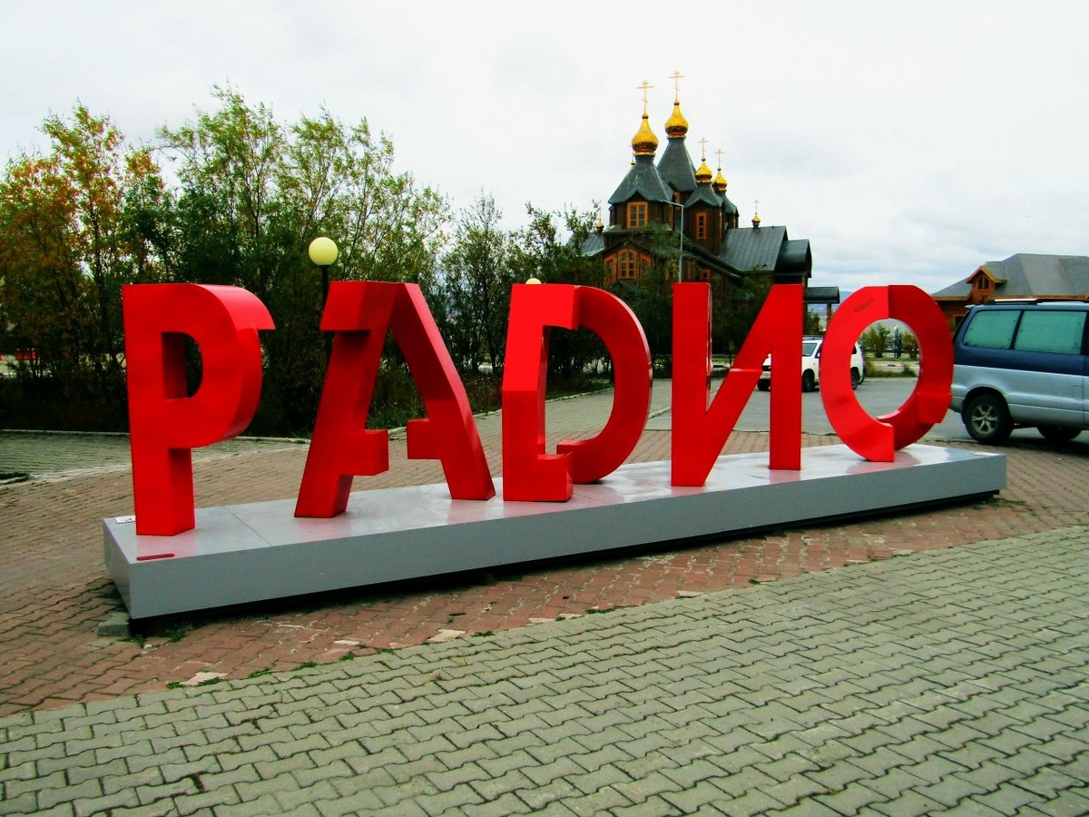 Местное радио "Пурга" тоже установило себе достопримечательность. С одной стороны посмотришь — радио, с другой стороны посмотришь — пурга, посмотришь глаза в глаза — пурга какая-то.
