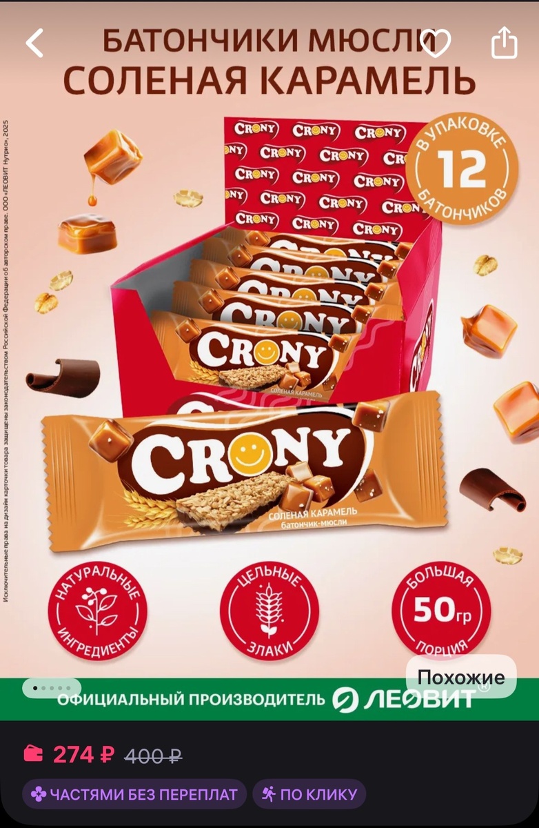 Батончик мюсли Крони 12 штук