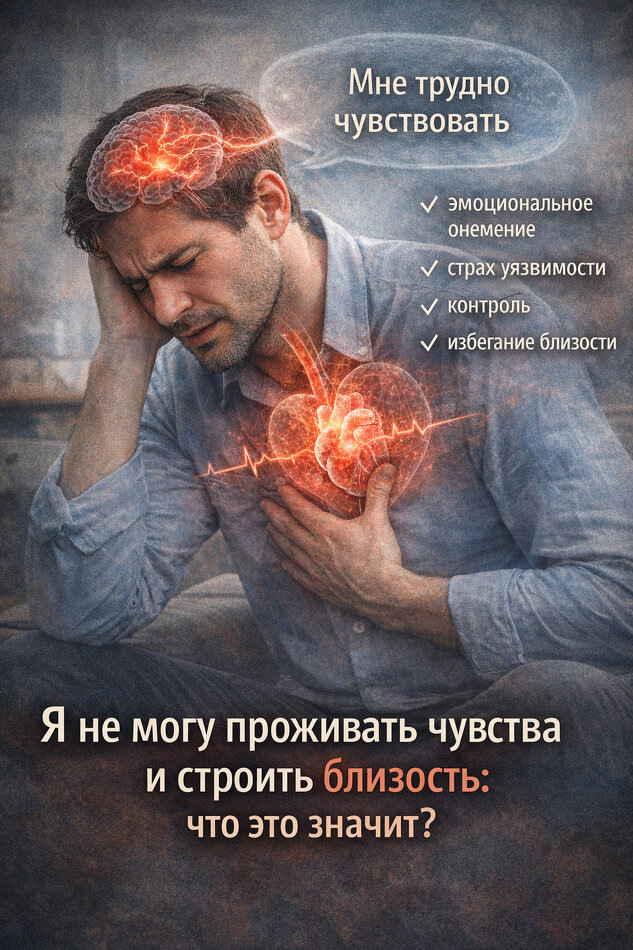 Люди по-разному называют одно и то же. “Не чувствую”, “Чувствую слишком сильно”, “Понимаю головой, но внутри пусто”, “Заливает, и я срываюсь”, общий смысл один, эмоции либо не распознаются, либо переживаются как опасность, а близость воспринимается как зона риска. Есть и медицинская часть. Эмоциональная тупость может быть следствием депрессии, хронического стресса, ПТСР, тревожного расстройства, выгорания, некоторых препаратов, употребления алкоголя. Проблемы сна и эндокринные нарушения тоже влияют. Если человек говорит “я ничего не чувствую” и при этом плохо спит, истощён, потерял интерес к жизни, сначала нужно исключить депрессивное состояние и соматику, а не начинать с нравоучений про “открытость”. Вывод. Что с этим делать терапевтически? Автор: Вьюков Антон Сергеевич