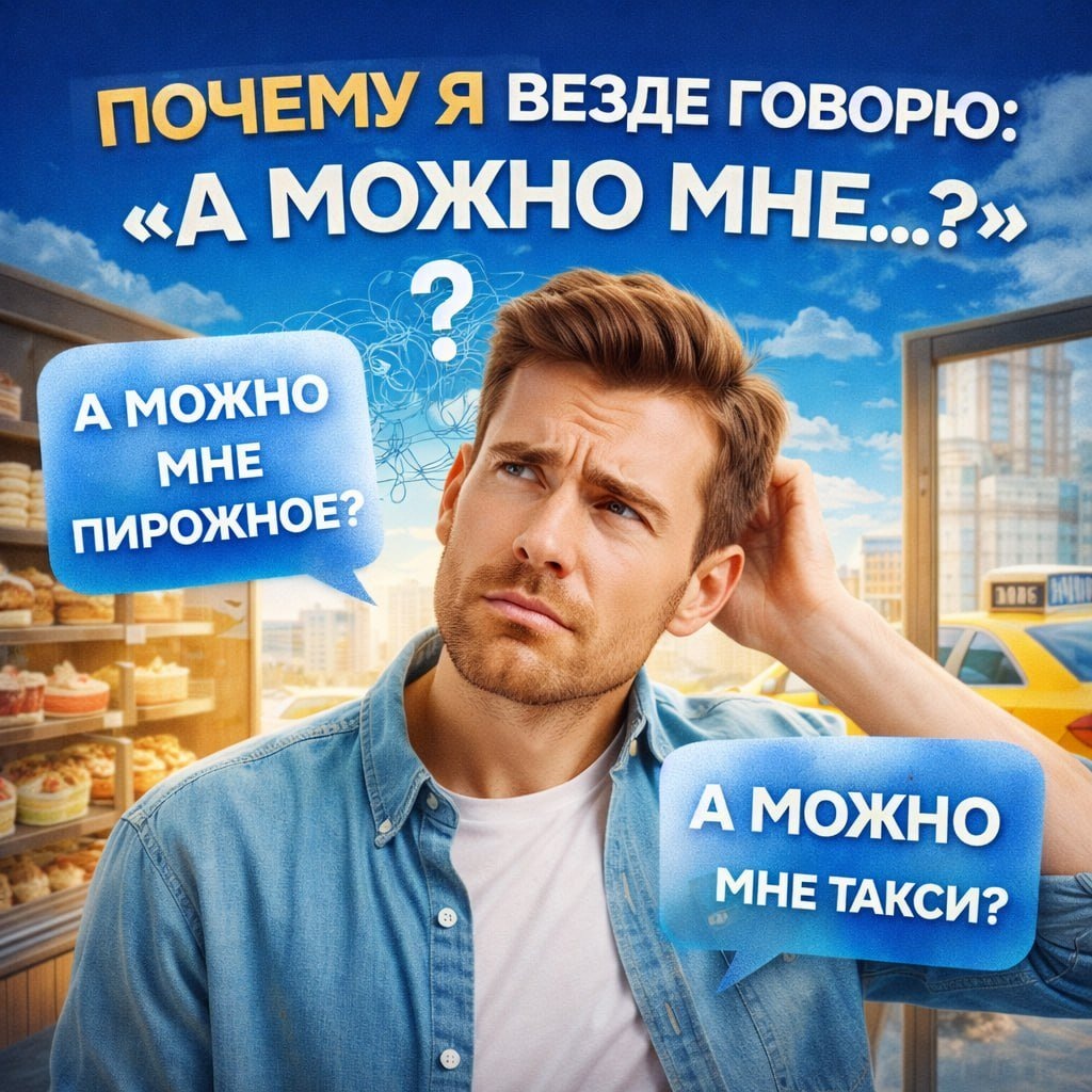 «Ты тоже везде говоришь: “А можно мне?..” - даже там, где можно без разрешения?» Я часто это слышу, и не от подростков. От взрослых внешне людей. Зашёл в магазин: - А можно мне пирожное? Заказывает такси: - А можно мне такси? В тренинговом центре слышу: - А можно я схожу в туалет? И каждый раз внутри у меня включается профессиональный «детектор». Многие уверены, что это вежливость. Но давайте честно. Вежливость - это: «Дайте мне, пожалуйста».
