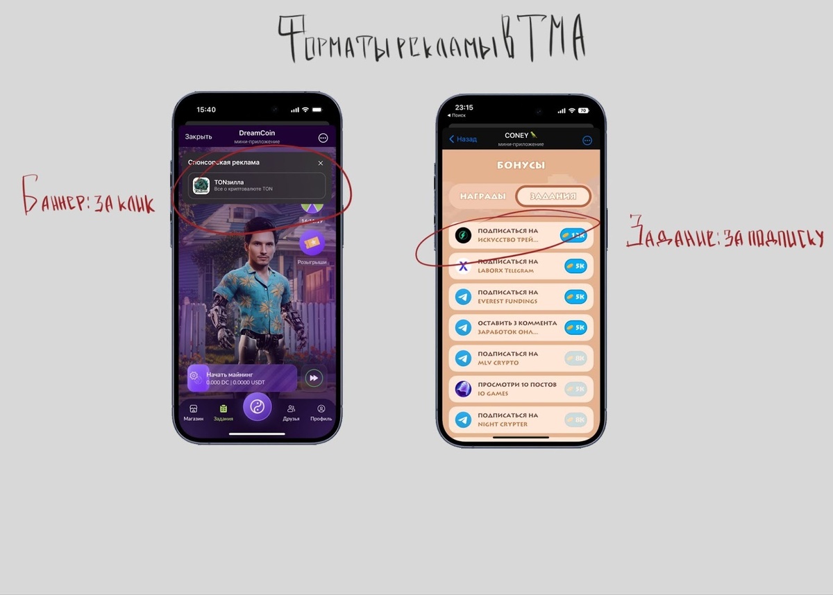 Общего у этих форматов то, что там низкая конкуренция = низкая стоимость и интеграция с Телеграм. Пользователь не переходит в другие экосистемы, а остаётся в Телеграм.