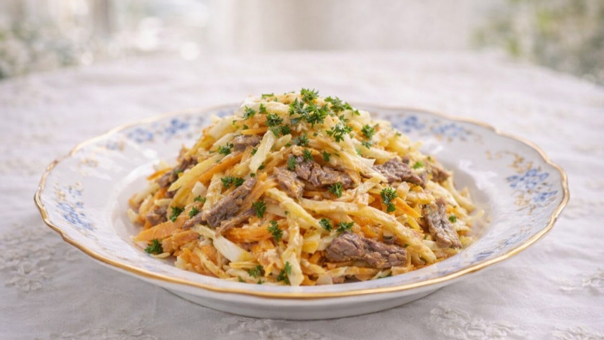 Салат Клязьма с говядиной и редькой. Рецепт из СССР, который создали для иностранных туристов