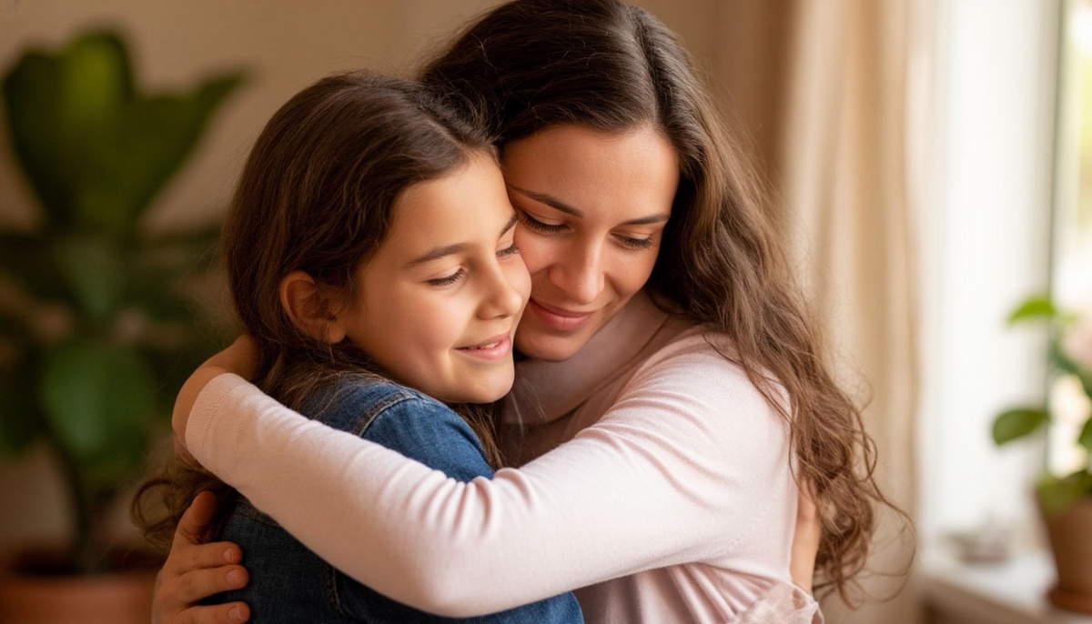 - Физический контакт. Если ребёнок не отталкивает — обнимите, погладьте по спине. Тактильное тепло снижает уровень стресса.