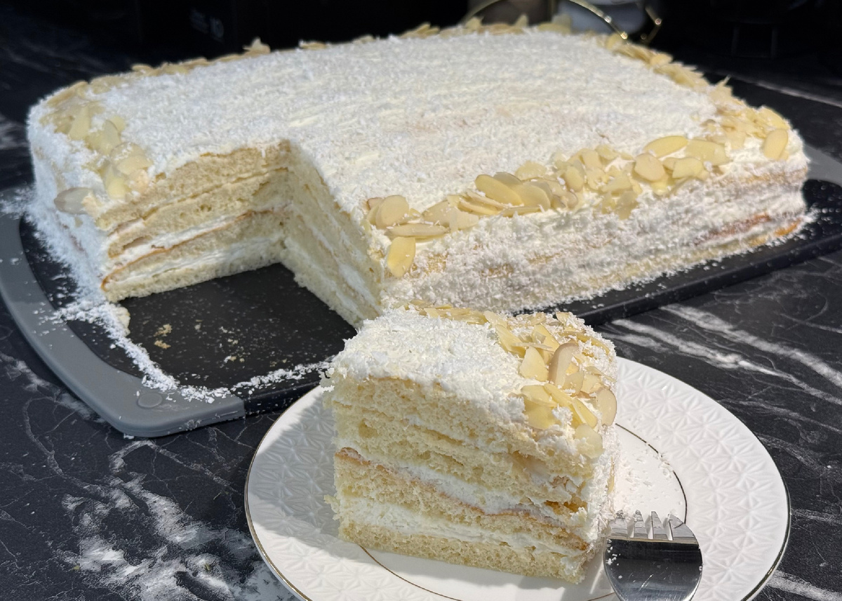 - Я украсила кокосовой стружкой и миндальными лепестками.