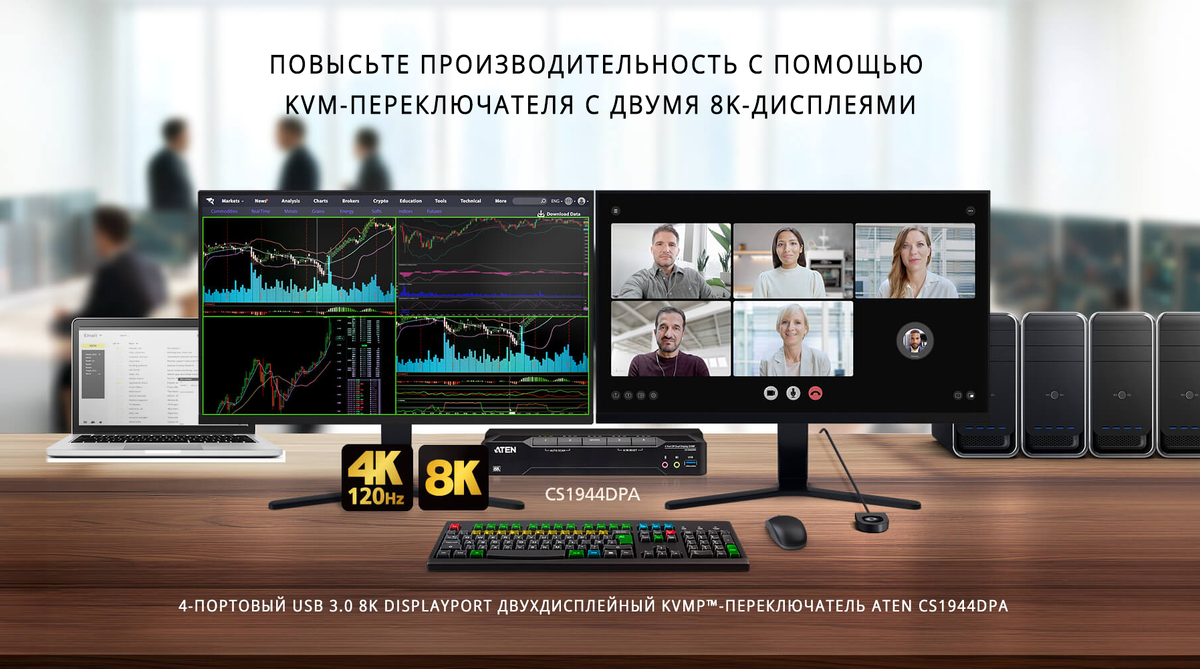 Расширьте возможности многоэкранных рабочих процессов с помощью KVM-переключателя с поддержкой двух 8K-дисплеев для творческих, финансовых и профессиональных задач. Компания ATEN, мировой лидер в области решений для управления периферией, сообщает о выходе на рынок высокопроизводительного KVM-переключателя CS1944DPA. Устройство предназначено для создания эффективного и организованного рабочего пространства с несколькими компьютерами, позволяет управлять четырьмя ПК с интерфейсом DisplayPort, используя одну клавиатуру, мышь и два монитора ATEN CS1944DPA отвечает потребностям профессионалов в сферах IT-администрирования, финансового анализа, создания контента, инженерного проектирования и гибридной работы, где необходима одновременная работа с несколькими системами без потери в качестве изображения и скорости отклика. Ключевые преимущества CS1944DPA: ATEN CS1944DPA создан для тех, кто ценит порядок, производительность и высокое качество изображения. Это не просто переключатель, а централ