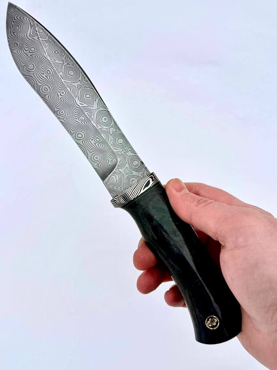 ‼️ Какую модель выберешь? На первом фото модель ИРБИС 🔥 На втором фото модель СТРЕЛЕЦ 🔥 В обоих случаях на клинках нержавеющая дамасская сталь, узор пирамида. Гарда - мокуме гане, Рукоять - карбон. Красивый пин в виде листочка на каждом ноже, добавлен в качестве украшения. Делали под заказ, можем повторить. Пиши в комментариях, какой нож бы выбрал ты?