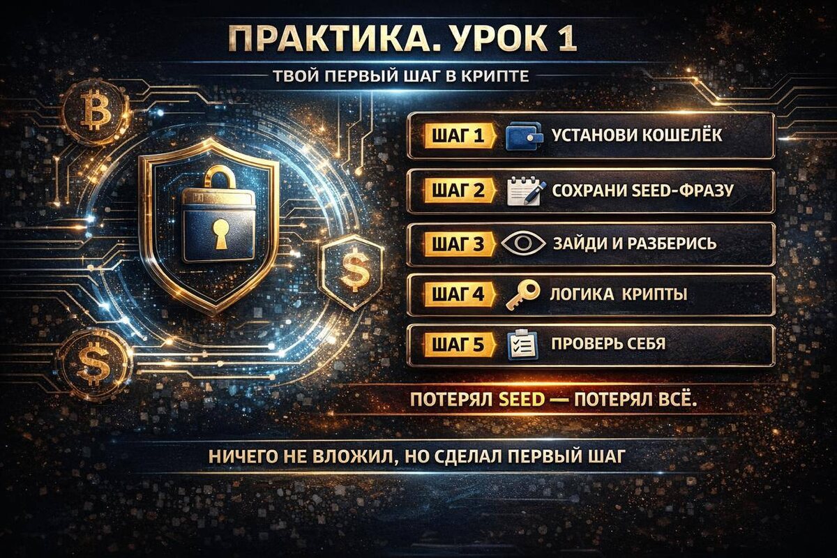 Урок 1 - первое реальное действие в крипте (без денег) Если ты новичок, твоя задача сейчас - не заработать, а научиться делать базовые действия безопасно. Вот конкретный план на один вечер. 1️⃣ Установи кошелёк 🟣Для урока будем использовать кошелёк Decimal Wallet ❗️устанавливай только с официального сайта или магазина приложений - никаких ссылок из чатов. 👉 Цель шага: понять, что кошелёк - это твоя точка входа в крипту. 2️⃣ Создай кошелёк и сохрани seed-фразу Когда создаёшь кошелёк: запиши seed-фразу на бумаге, не делай скриншоты и не храни в заметках. ❗️ Потерял seed - потерял доступ навсегда. 👉 Цель шага: осознать личную ответственность. В крипте нет «восстановить пароль». 3️⃣ Зайди в интерфейс и ничего не делай Зайди в кошелёк и: ⏩ посмотри адрес ⏩ посмотри вкладки ⏩ посмотри весь интерфейс ❌ Не покупай ❌ Не подключай ❌ Не подтверждай 👉 Цель шага: привыкнуть к интерфейсу без стресса. 4️⃣ Пойми простую логику ✅ Кошелёк - это не приложение, а ключ. Криптовалюта хранит