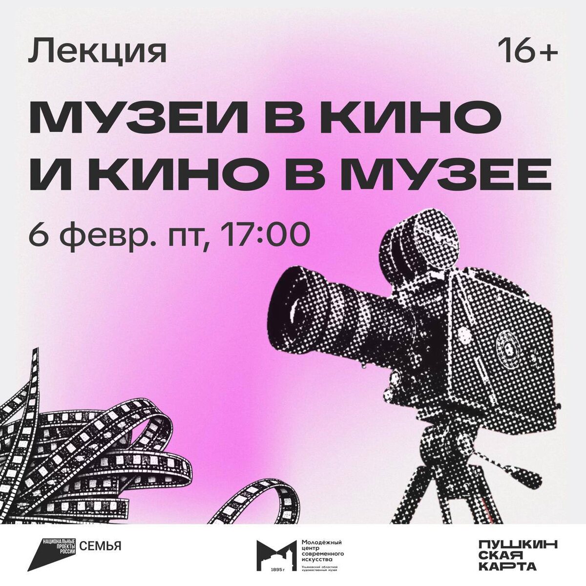 » 🗓️ 6 февраля, 17:00 📍МЦСИ, Ленина 83 Приглашаем на лекцию о том, как кино и музейное пространство взаимодействуют друг с другом и формируют интерес массовой аудитории к искусству и истории. Вы узнаете о музеях как съёмочных площадках, о фильмах, где музей становится ключевым местом действия, и о кинолентах, посвящённых самим музеям и их коллекциям. Вы сможете проследить, как кино влияет на восприятие музея и мотивирует зрителей посещать культурные институции в реальной жизни. На лекции поговорим о том, как кино формирует культурные привычки и способствует вовлечению широкой аудитории в музейную среду. Билеты 🎟️ #6февраля26@culturnik