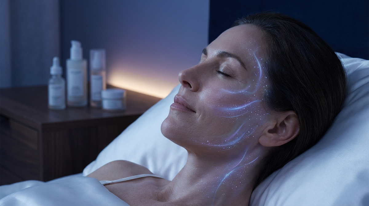 Распространенное заблуждение: кожа "отдыхает" во время сна. На самом деле именно ночью происходят самые интенсивные восстановительные процессы — это подтверждает хронобиология, наука о биологических ритмах. В эти часы наблюдается пик регенеративной активности: Пропустить вечерний уход означает упустить 8 часов самой эффективной работы кожи. Этапы 1-2: Двухэтапное очищение (2 минуты) После 40 лет одного умывания недостаточно. Первое нанесение растворяет макияж, санблок и дневные загрязнения — мицеллам нужно минимум 60 секунд для эффективной работы. Второе обеспечивает глубокое очищение пор от накопленных загрязнений. Этап 3: Подготовка кожи (10 секунд) Тоник восстанавливает pH после контакта с водопроводной водой и создает оптимальные условия для проникновения активных компонентов. Этап 4: Специальный уход за глазами (1,5 минуты) Кожа вокруг глаз в 7 раз тоньше лицевой, поэтому требует деликатного подхода. Принцип "сыворотка + крем" работает эффективнее: легкие молекулы проникают глубо