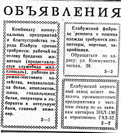 В 1988 году комбинату благоустройства требовался рабочий по отлову собак. Профессия, судя по тексту объявлений, и тогда считалась презренной. Желающих заниматься ловлей было немного - заманивали жильем. Зато в то время, проблеме бродячих собак уделялось особое внимание, заманивали даже служебной жилплощадью. В нашу травоядную эпоху ловцы собак подвергаются общественной травле - зоозащитники не дремлют. Итог этого гуманистического перегиба известен. Стаи собак нападают на людей, загрызают насмерть, в том числе детей. Если так будет и дальше продолжаться государству придется возвратиться к советскому опыту.