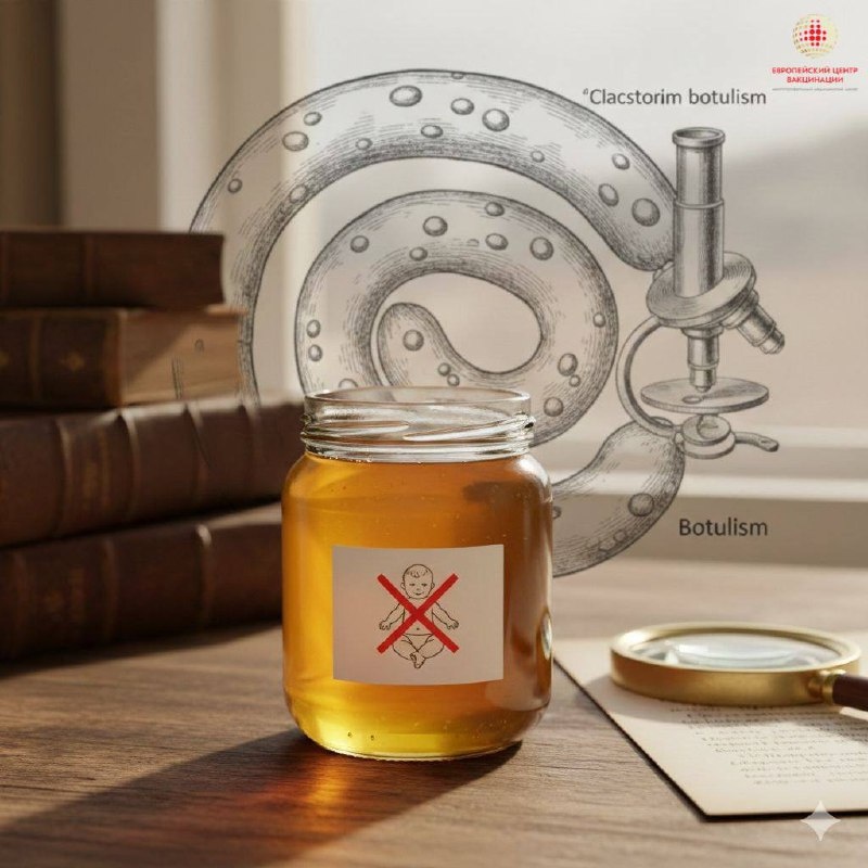 ? Многие удивляются, завидев на баночках мёда надпись: «Не давать детям до 1 года» Это не маркетинговый ход и не излишняя осторожность! Это защита от «тихого убийцы» — спор ботулизма 📜 Слово «ботулизм» происходит от латинского botulus — колбаса В XIX веке немецкий врач Юстинус Кернер первым подробно описал болезнь после массового отравления кровяной колбасой Но при чём здесь мёд❓ 1976 год — это поворотный момент! Именно тогда исследователи в Калифорнии впервые официально связали случаи младенческого ботулизма с употреблением мёда До этого врачи не могли понять, почему здоровые младенцы внезапно слабеют — синдром вялого ребенка 📎 Выяснилось, что бактерии Clostridium botulinum живут в почве! Пчелы, собирая нектар, случайно приносят их споры в улей Мёд — идеальный консервант, он не убивает споры, а просто держит их в «спящем» состоянии ! Почему это опасно только для детей❓ Здесь вступает в игру биология! ⏺ Взрослые Наша микрофлора кишечника уже сформирована и достаточно су