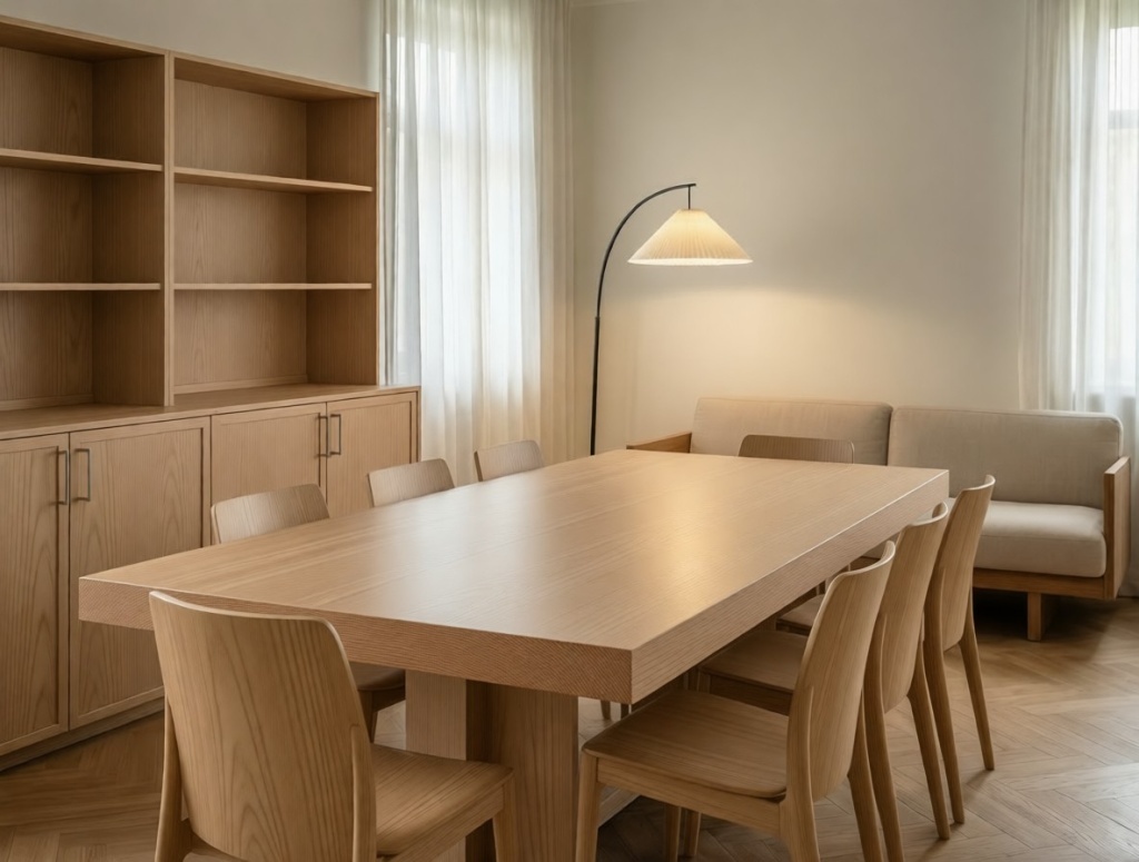 Ясеневый шпон востребован в стилях, где ценят ясность форм и природную эстетику. Ключевые тренды: