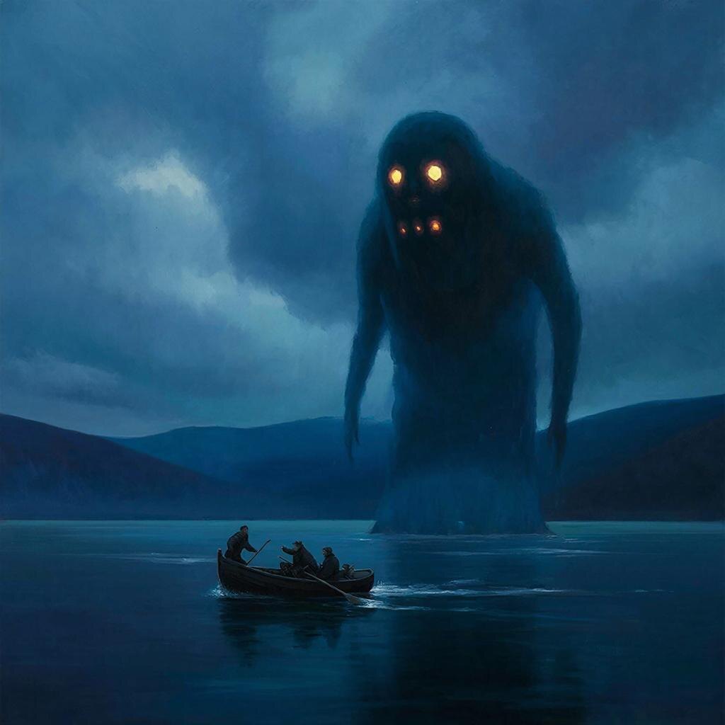 Мы разбили лагерь в километре от берега. Ночью, при полной луне, я решил подойти к воде. И стал свидетелем странного явления. На абсолютно безветренной глади озера, далеко от берега, возникла и пошла крупная, расходящаяся рябь, как от плывущего под водой тела огромного размера. Но плыло оно не по прямой, а зигзагами, меняя направление резко, как живое существо, что-то выслеживающее. Рябь шла несколько минут, а потом так же внезапно исчезла, словно объект ушёл на глубину. Ни всплеска, ни звука.