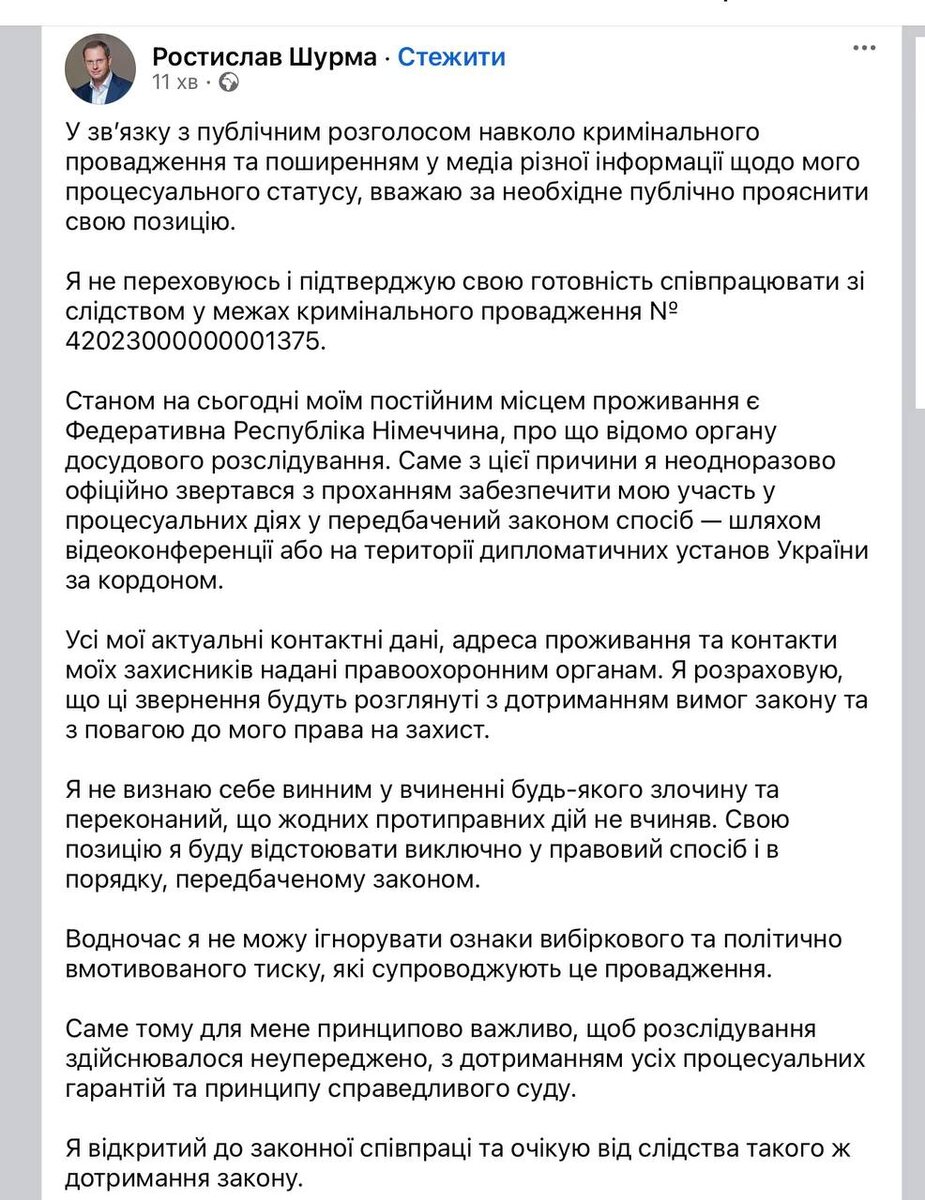 Ростислав Шурма, отвечавший за энергетику и бывший до января 2026 года представителем государства в Наблюдательном совете "Нафтогаза" заявил, что он не скрывается, но не вернется в Украину на суд. Также, он открыто сообщил, что живет в Германии, но на всякий случай уже переехал в Вену, чтобы его не экстрадировали. Да и в своих действиях он не видит ничего предосудительного. ♥️ Радио Жизнь | Бот Жизни