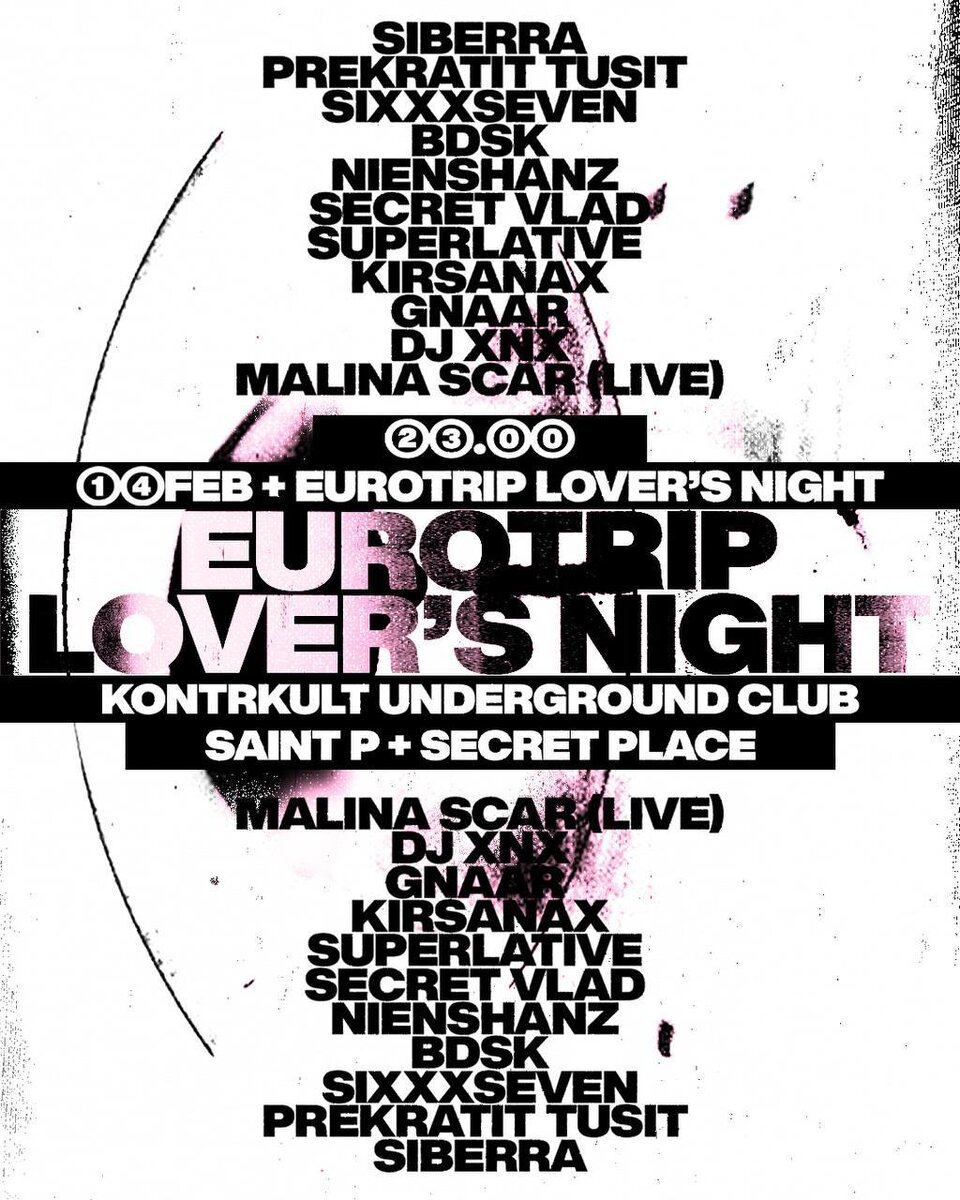 14 февраля, СПб eurotrip в день влюбленных купаем в горячей патоке — к ночному свиданию готовимся впечатлять по всем канонам конфетно-букетного В лайнапе плюсом московские гости: DJ XNX — папа лейбла Get Busy, SECRET VLAD от лютых Underground G, GNAAR — творец нового саунда Глюкозы, и дикая роза MALINA SCAR с лайвом-стрелой прямиком в сердечко. по жанрам катаемся от рэпа и даба до техно и габбы, удовлетворяя любой каприз, мой сладкий сахар. можешь не ломаться — это не ты безотказный, это мы не оставляем шанса. poster: daria+gerc® 🎫 Билеты ⭐️ 💓⭐️⭐️ ⭐️⭐️ 💓 ⭐️ 📆 14 февраля 📍 Kontrkult в секретном месте, Санкт-Петербург