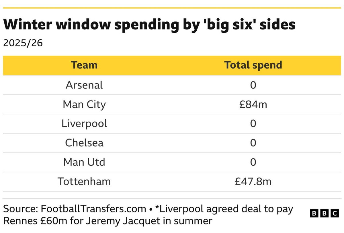 Сколько клубы "большой шестерки" Премьер-Лиги потратили в январе 📊