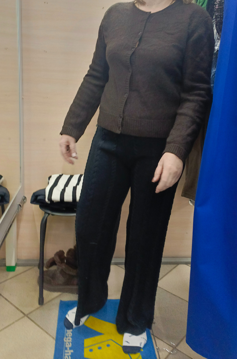 Кардиган шерстяной, штаны синтетические.