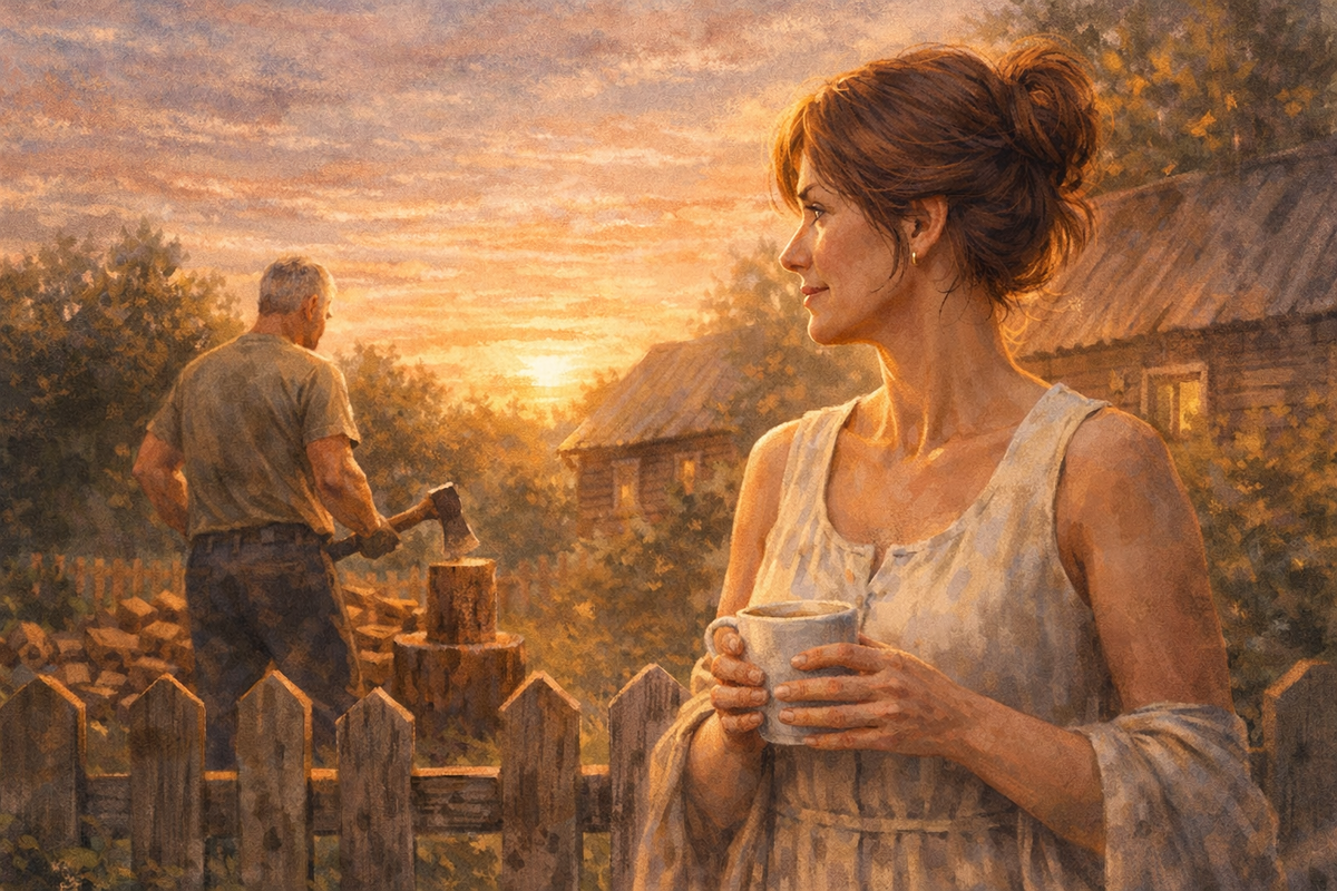 Она вышла на крыльцо с чашкой чая, чтобы унять дрожь в руках. Солнце начинало садиться, окрашивая небо в цвета спелого персика. Ей хотелось тишины, чтобы склеить разбитое сердце. Но покой нарушил ритмичный, уверенный звук.
