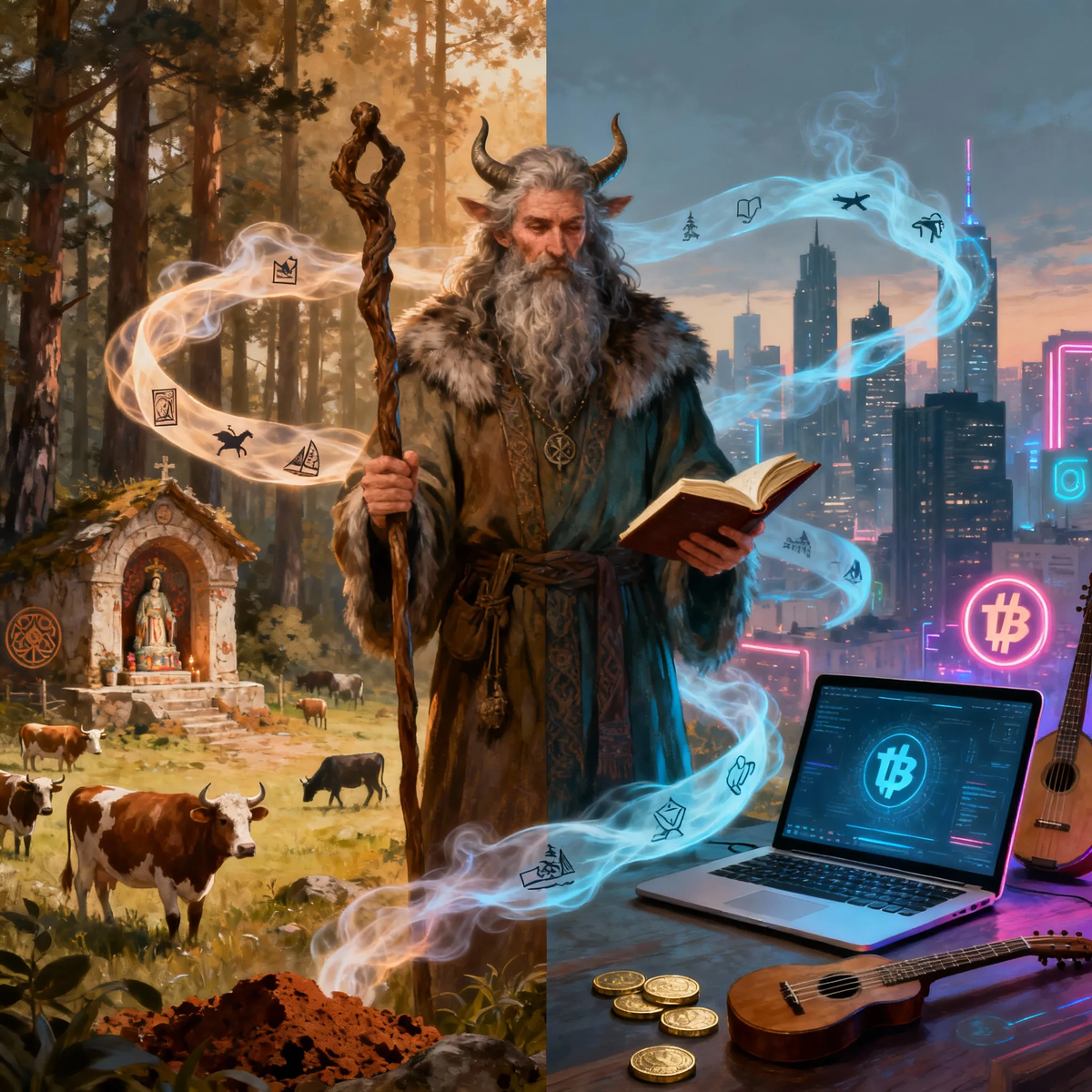 Велес — один из самых многогранных и загадочных богов славянского пантеона. Будучи «скотьим богом», владыкой мудрости и проводником между мирами, он исторически аккумулировал в себе функции, связанные с материальным благополучием и тайными знаниями. Однако характер обращений к нему претерпел значительные изменения за последние столетия. Древние просьбы: Выживание и земной достаток В эпоху Древней Руси и в период двоеверия просьбы к Велесу носили преимущественно практический и общинный характер. Крестьяне и ремесленники видели в нем прежде всего «хозяина» земных благ. К Велесу обращались с просьбами о сохранении домашнего скота от болезней и хищников, так как животные были основным мерилом богатства. Пастухи считали его своим главным покровителем и приносили жертвы, чтобы стадо не разбредалось. Также к нему взывали торговцы перед дальними поездками, прося удачи в сделках и честной прибыли. Особое место занимали просьбы о плодородии земли: обряд «завивания бороды» на последнем снопе был